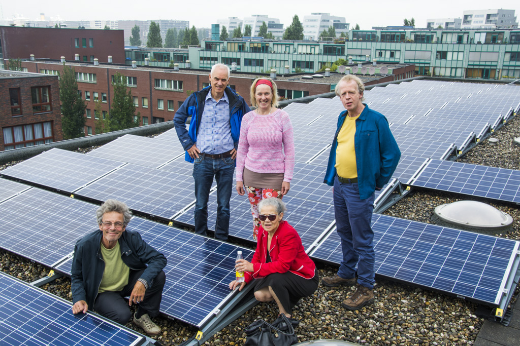Huiseigenaren legden panelen op hun dak, dat zou voor huurders ook moeten kunnen, vonden wij. Als coöperatie kun je de kosten en de opbrengsten verdelen, je kunt ook samen gebruikmaken van regelingen en subsidies. Dat helpt om de kosten te verlagen. In Nederland zijn afgelopen 10 jaar veel energiecoöperaties opgericht. Zon op Zeeburg werd in 2015 de eerste zonnecoöperatie van huurders in sociale woningbouw. Herman vervolgt: wij zijn heel succesvol. Sinds 2017 produceerde onze coöperatie 552.000 kWh groene stroom, waarmee 253.271 kg CO2 is bespaard. Iedereen heeft de investering in de panelen er al lang uit en profiteert nog steeds van de zelf opgewekte stroom.